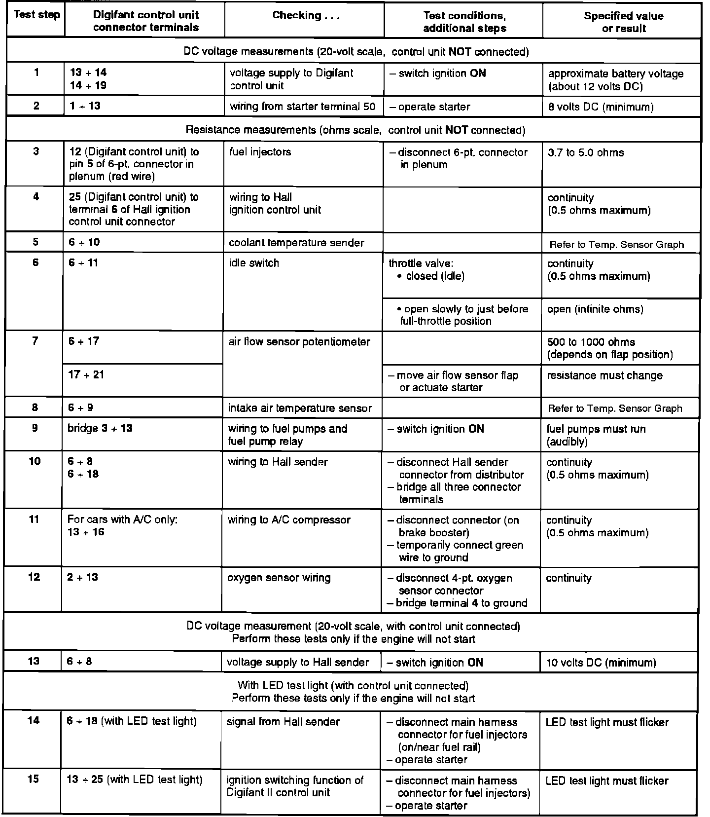 Digifant II Electrical Tests: