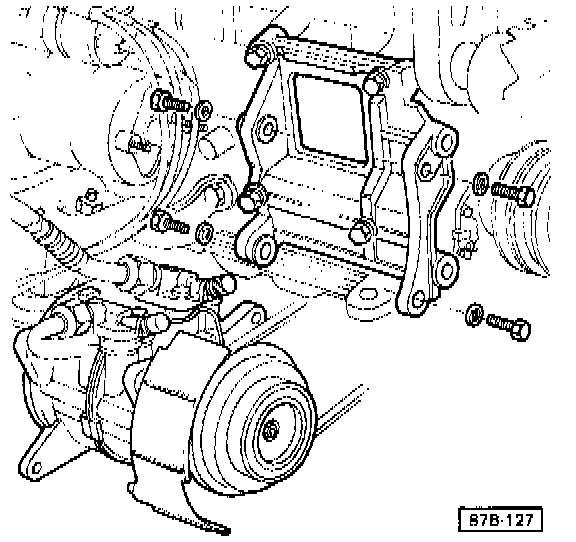 - On air-conditioned cars, the air conditioning compressor should be removed and set aside without disconnecting the refrigerant lines, as described below, before removing the engine.