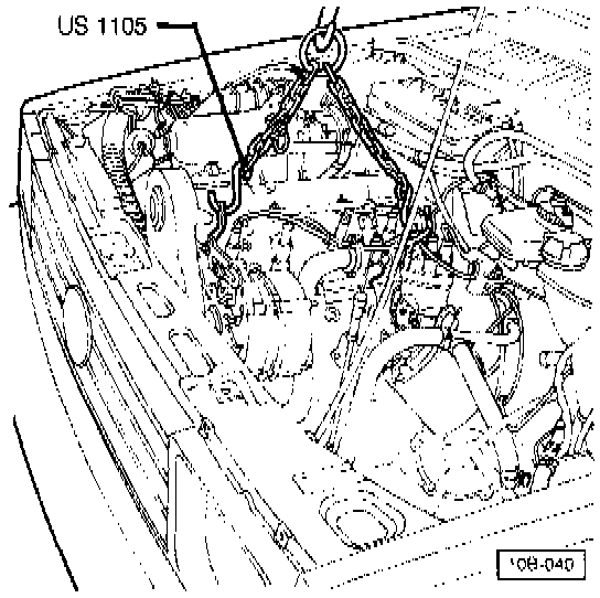GENERAL:- The engine is removed after being separated from the transaxle. When removing the engine, it is necessary to support the forward end of the transaxle. The procedure which follows describes the use of a Volkswagen special tool for this purpose. It is not necessary to remove the hood unless it will interfere with the type of lifting equipment being used.