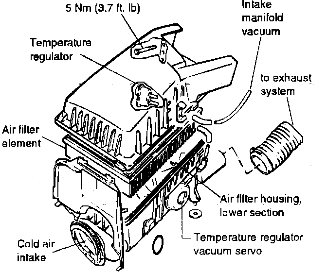 The thermostatic air cleaner system consists primarily of two components, these are: the vacuum operated air regulator flap and the temperature control valve.