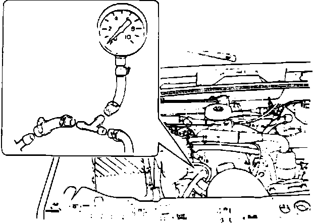 NOTE: The fuel pressure gauge must have a range of at least 0 to 50 psi (0 to 3.5 bar) and must be securely connected to prevent it from coming loose under pressure.