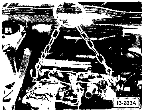 16. Raise the hoist slightly, so that the weight of the engine and transaxle assembly is supported by it.