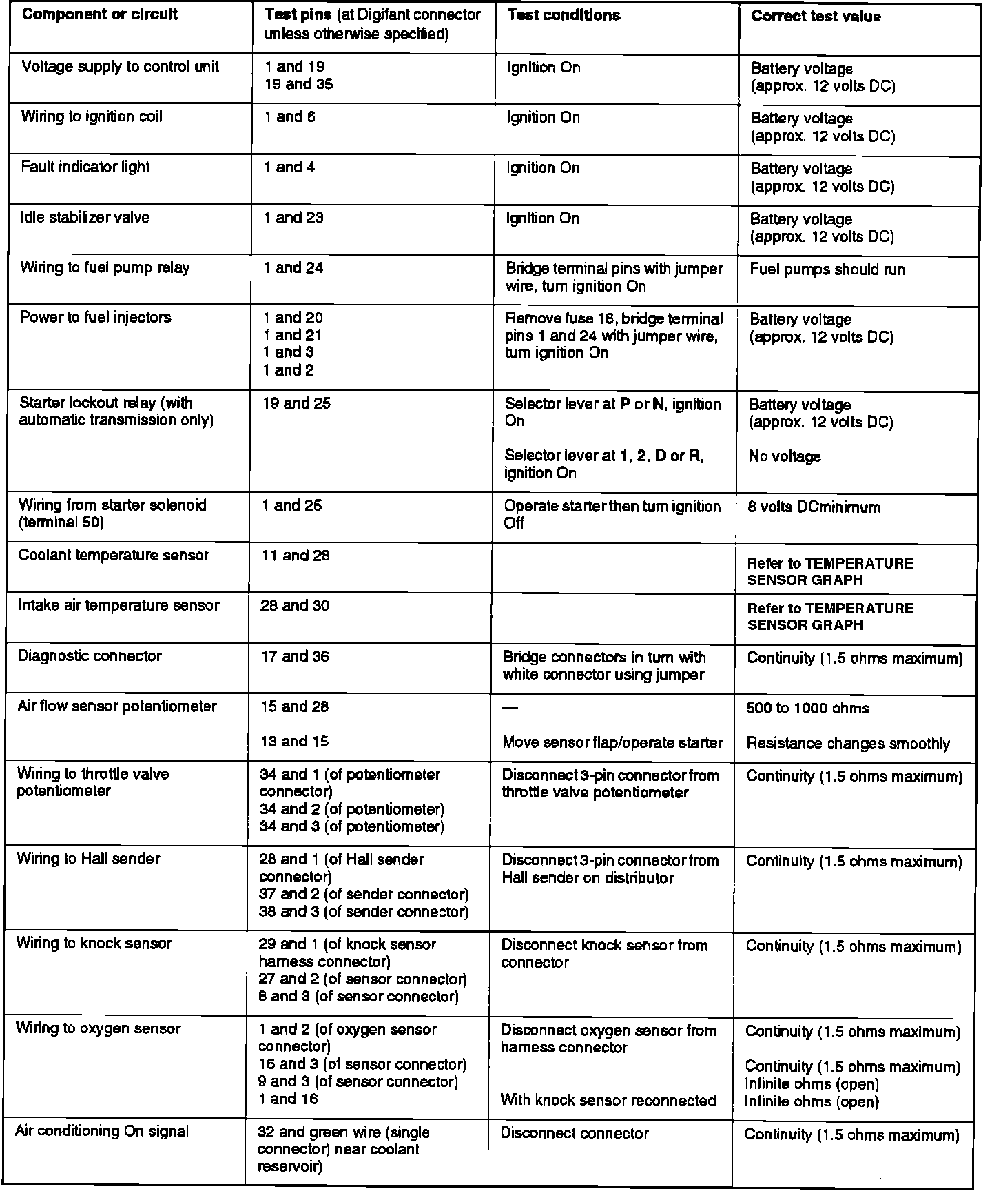 Digifant I Electrical Tests: