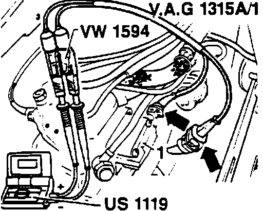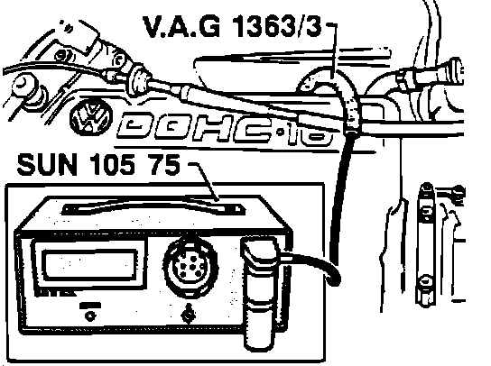 3. Connect VAG 1367 engine tester using VAG 1367/8 inductive pickup, or an equivalent engine analyzer with strobe timing light and tachometer.
