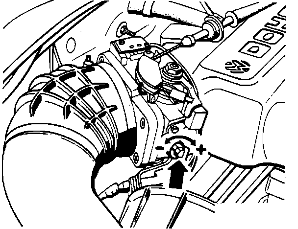NOTE: On the PASSAT, access to the differential pressure regulator is limited. Trace the wiring harness from the differential pressure regulator up to the harness connector located on the right shock tower. The connector is positioned in a small holder. Use this connector for test equipment hook-up instead of the connector at the differential pressure regulator.