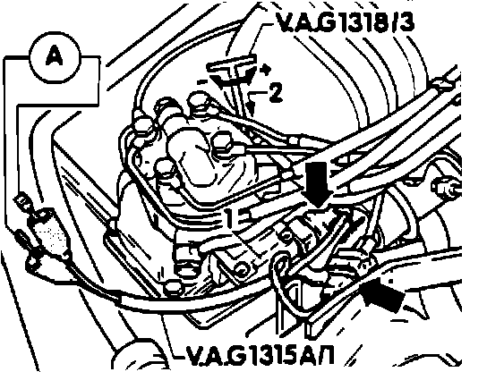 9. Connect test adaptor VAG 1315A/1 (or equivalent) between differential pressure regulator and harness connector.