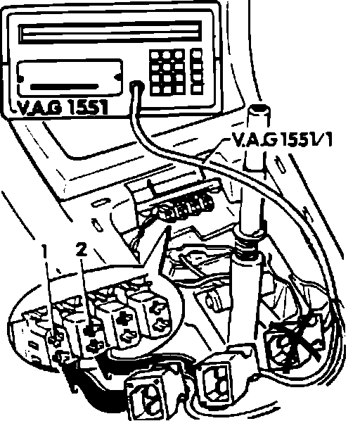 15. Connect VAG 1551 with adapter cable VAG 1551/1 as follows: