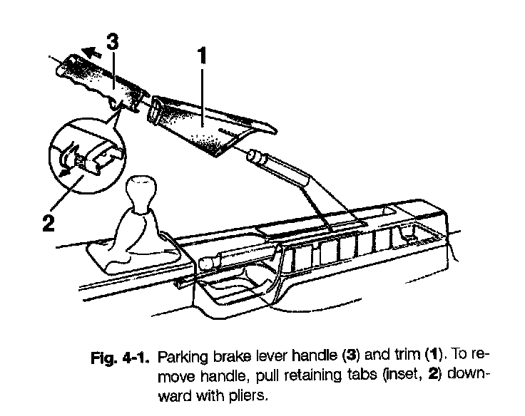 - To remove the console, first remove the handle and trim from the parking brake lever.