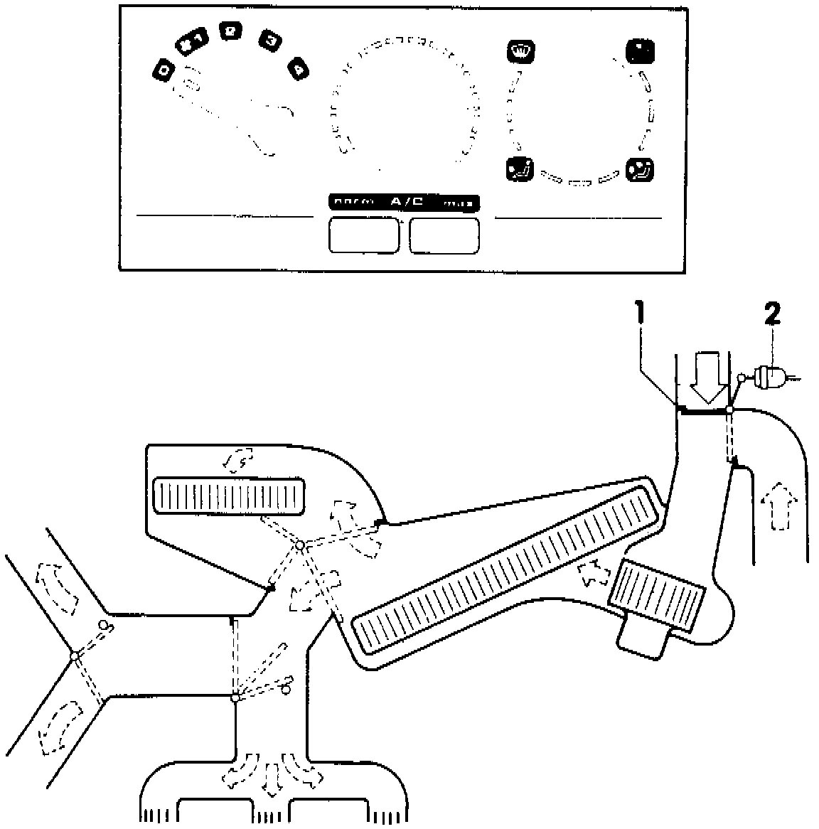 - fresh air/recirculation vacuum servo 2 must actuate/retract (vacuum applied)