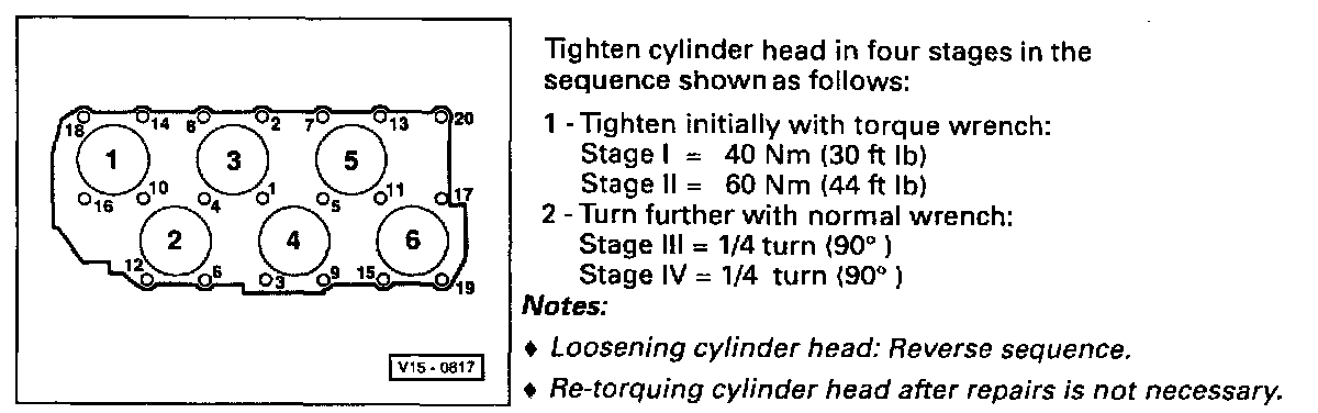 2.8L VR6 Engine Torque SpecificationsCylinder Head Torque Sequence And Specifications: