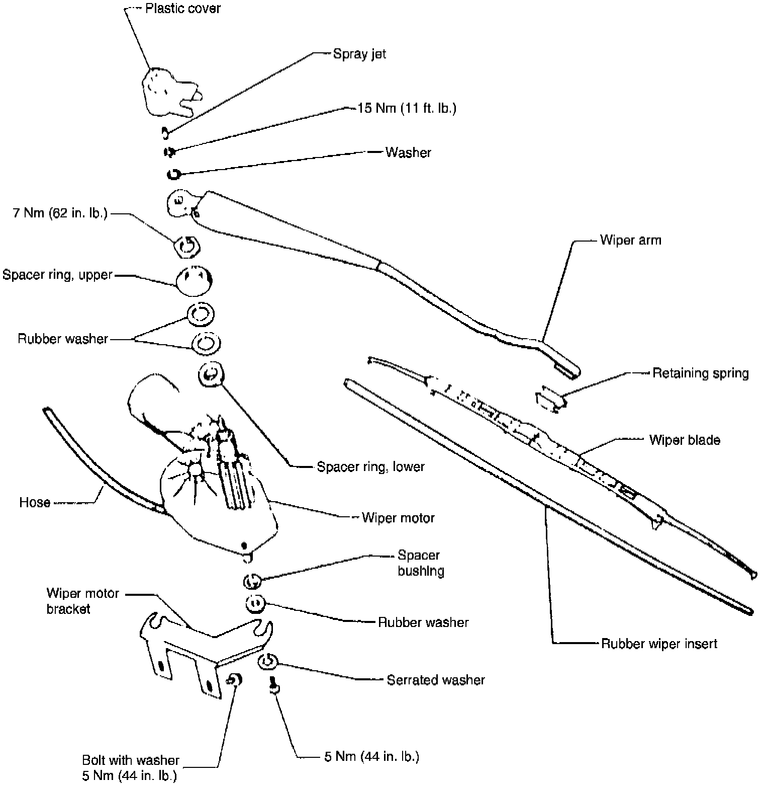 e. Torque wiper pivot shaft bushing mounting nut to 62 inch lbs.