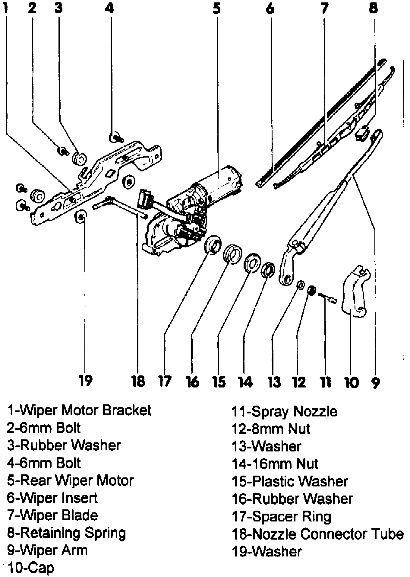 Fig. 28 Exploded View Of Rear Windshield Wiper Assembly: