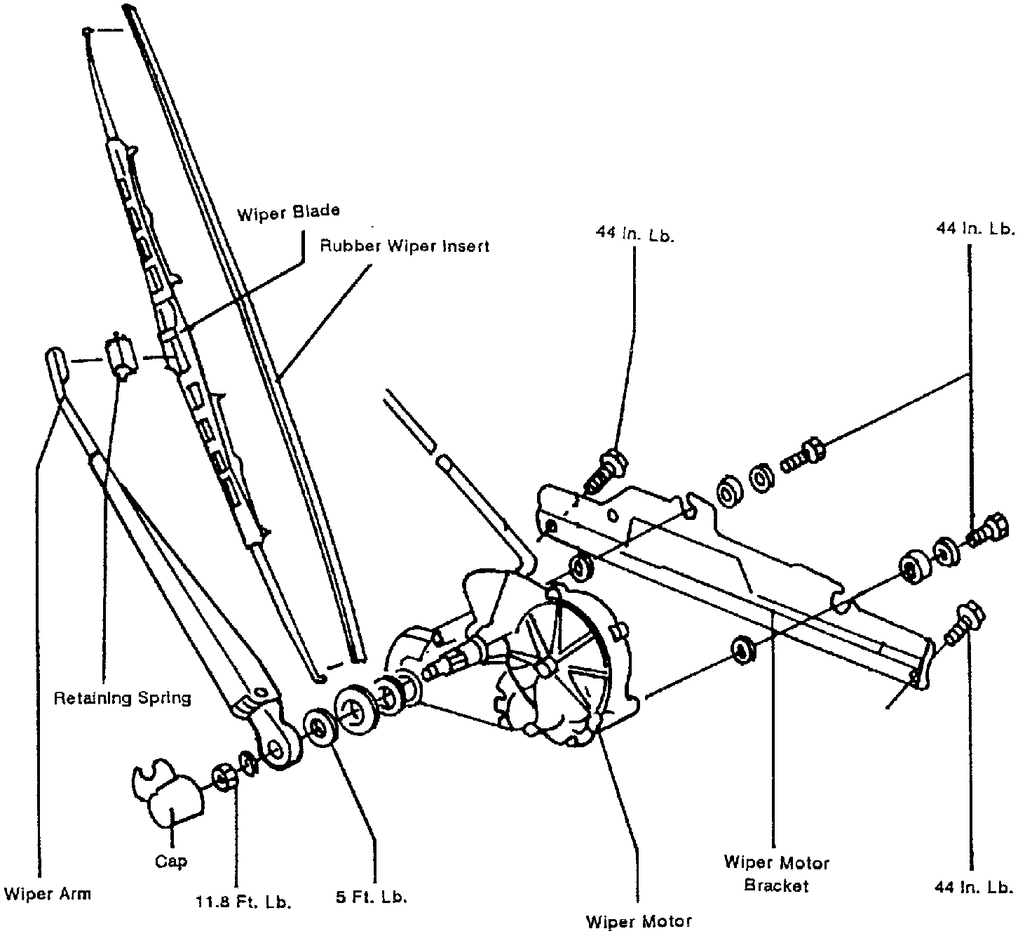 f. Torque wiper arm mounting nut to 12 ft. lbs.