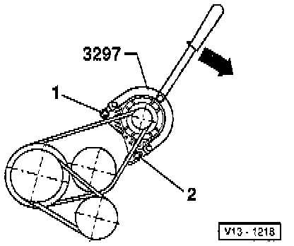 2. Press alternator down to stop with tensioning lever tool No. 3297, or equivalent, at least 3 times to ensure optimal ease of movement.