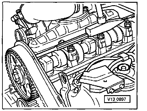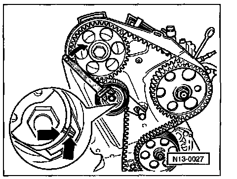 - Tighten camshaft sprocket mounting boll. Tightening torque: 45 Nm (33 ft lb)