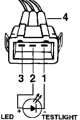 - Connect an LED test light between terminals 1 and 2 of the power stage harness connector.