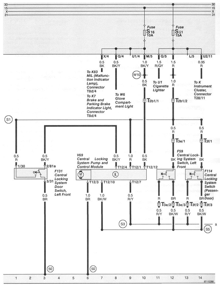 Central Locking System Switch (Passenger Door), F114 13-14