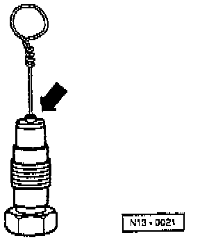 - Push a piece of wire (0 0.8 mm) through the hole of the pressure piston (arrow) up to ball valve and press pressure piston and housing together onto stop.