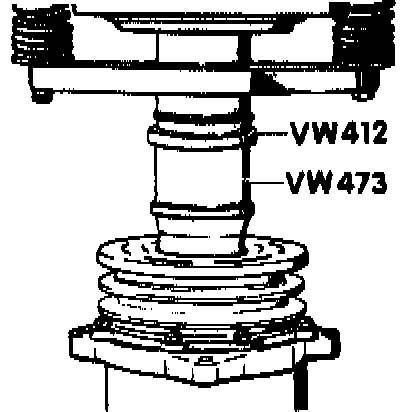 - as an alternate method, press pulley onto compressor shaft using spacers VW 412 and VW 473