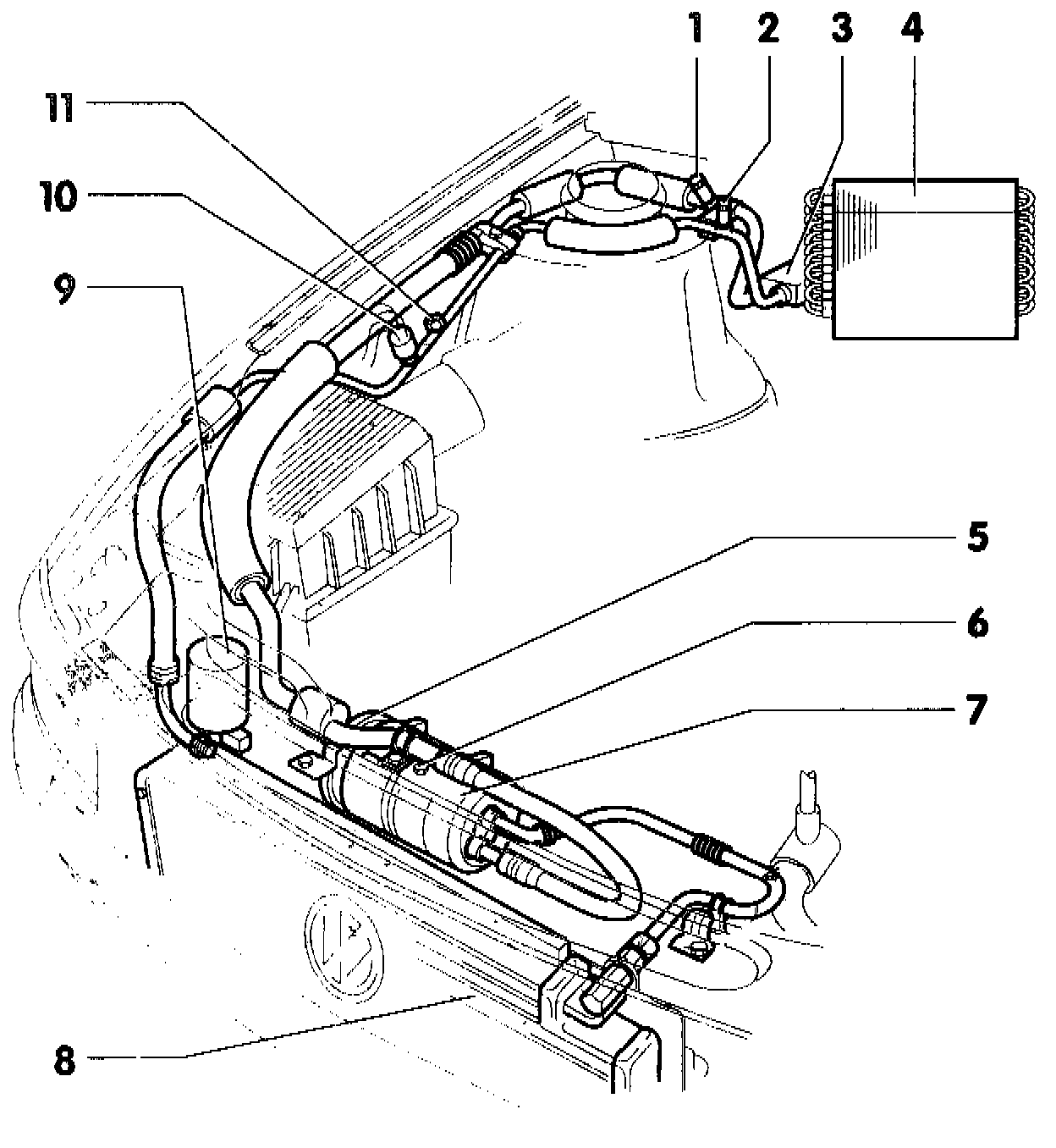 Note: A/C pressure switch -10- can be removed without discharging the A/C system.