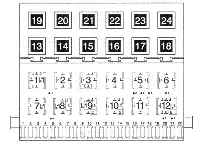 Note: Locations of relays in positions 13-24 may vary from vehicle to vehicle depending on model and option content.