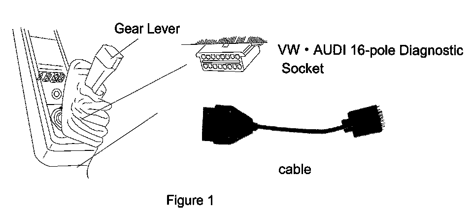 1. Located under the dust cover of the gear lever or at right side of upper cover of gear lever. Remove the dust cover, you will see a 16-pole diagnostic socket. Plug VW . AUDI adapter cable (16-pole) for the tool into the diagnostic socket.