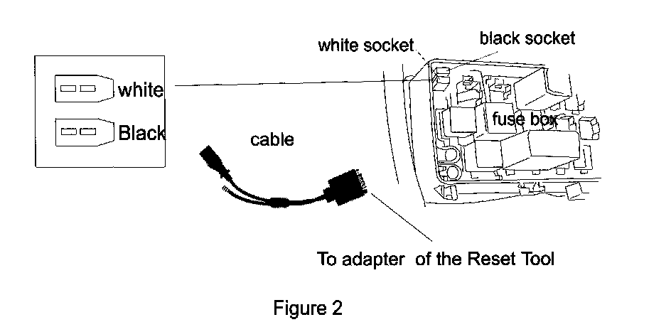 3. The black 2-pin diagnostic socket is power socket, plug black terminal of adapter cable (2-pole) for the tool into it. The white 2-pole diagnostic socket is signal socket. Plug white terminal of adapter cable (2-pole) into it.