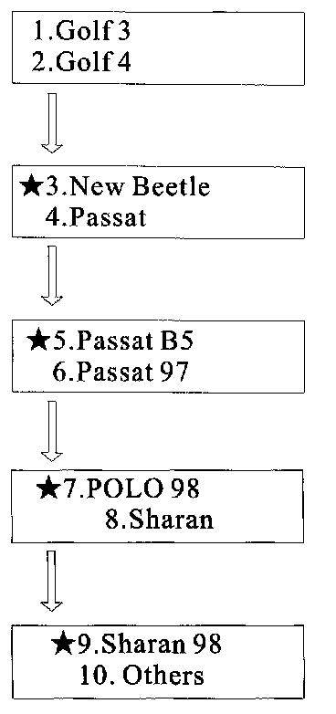 2. Move STAR cursor to VOLKSWAGEN and then press button E.