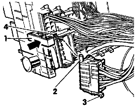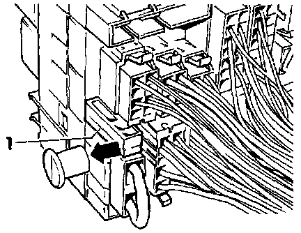 - Pull open locking slide -1- on back of fuse/relay panel in direction indicated (arrow).