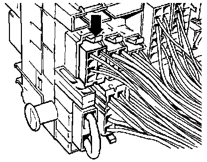 - Depress locking clip (arrow) and pull multi-point connector from fuse/relay panel.