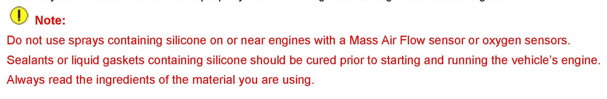 ^ Do not use sprays containing silicone on or near running engines with a Mass Air Flow sensor or Oxygen sensors.
