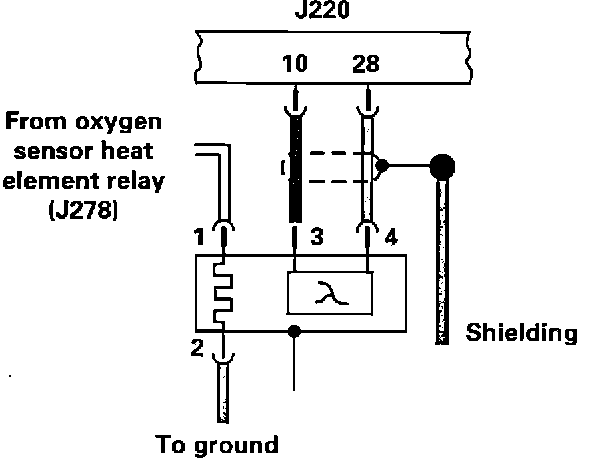 The voltage produced by the Heated Oxygen Sensor varies between 0.1 - 1.0V. The ECM uses this information to adjust the amount of fuel injected.