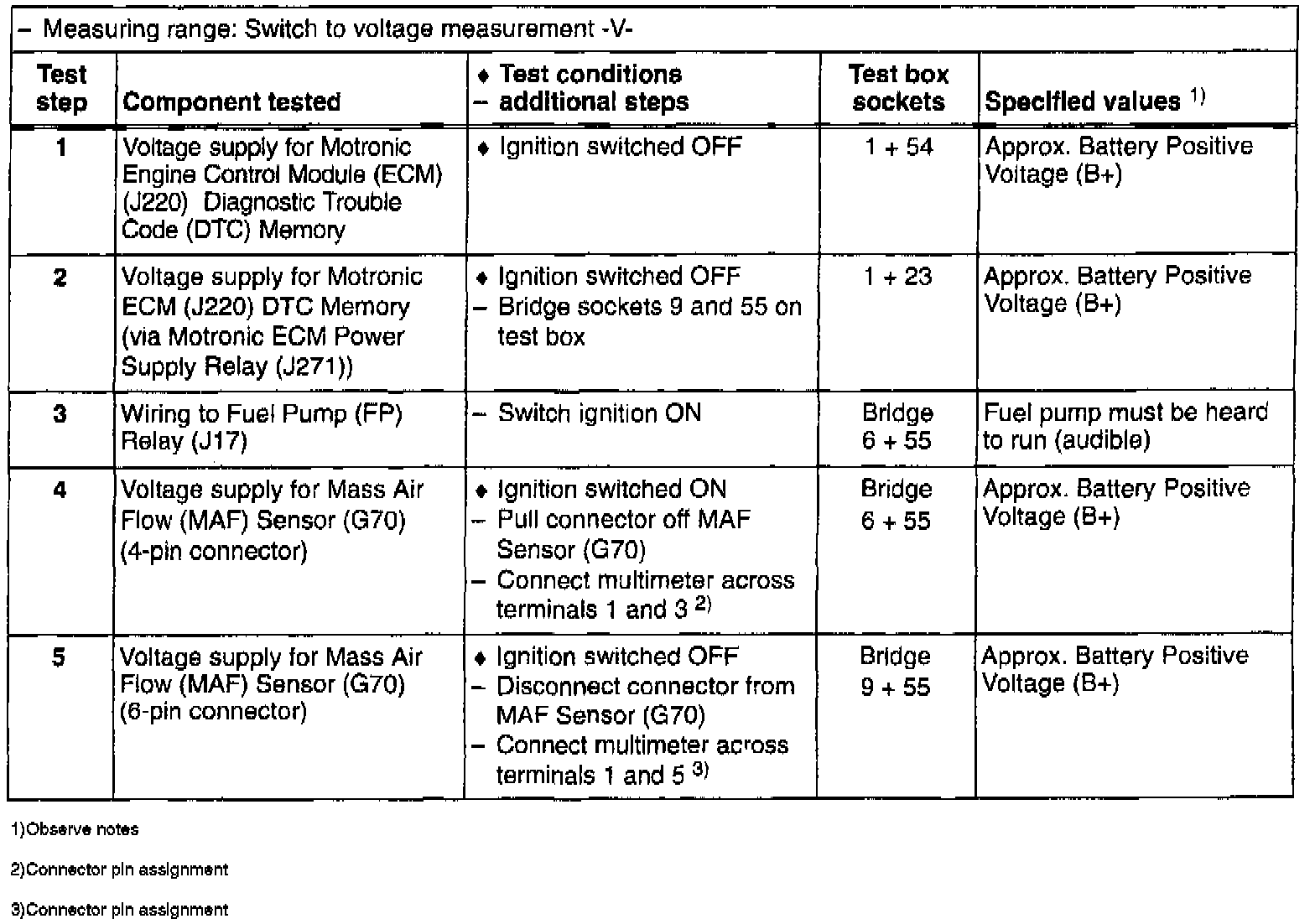 Electrical Checks Using VAG 1598 Test BoxREQUIREMENTS