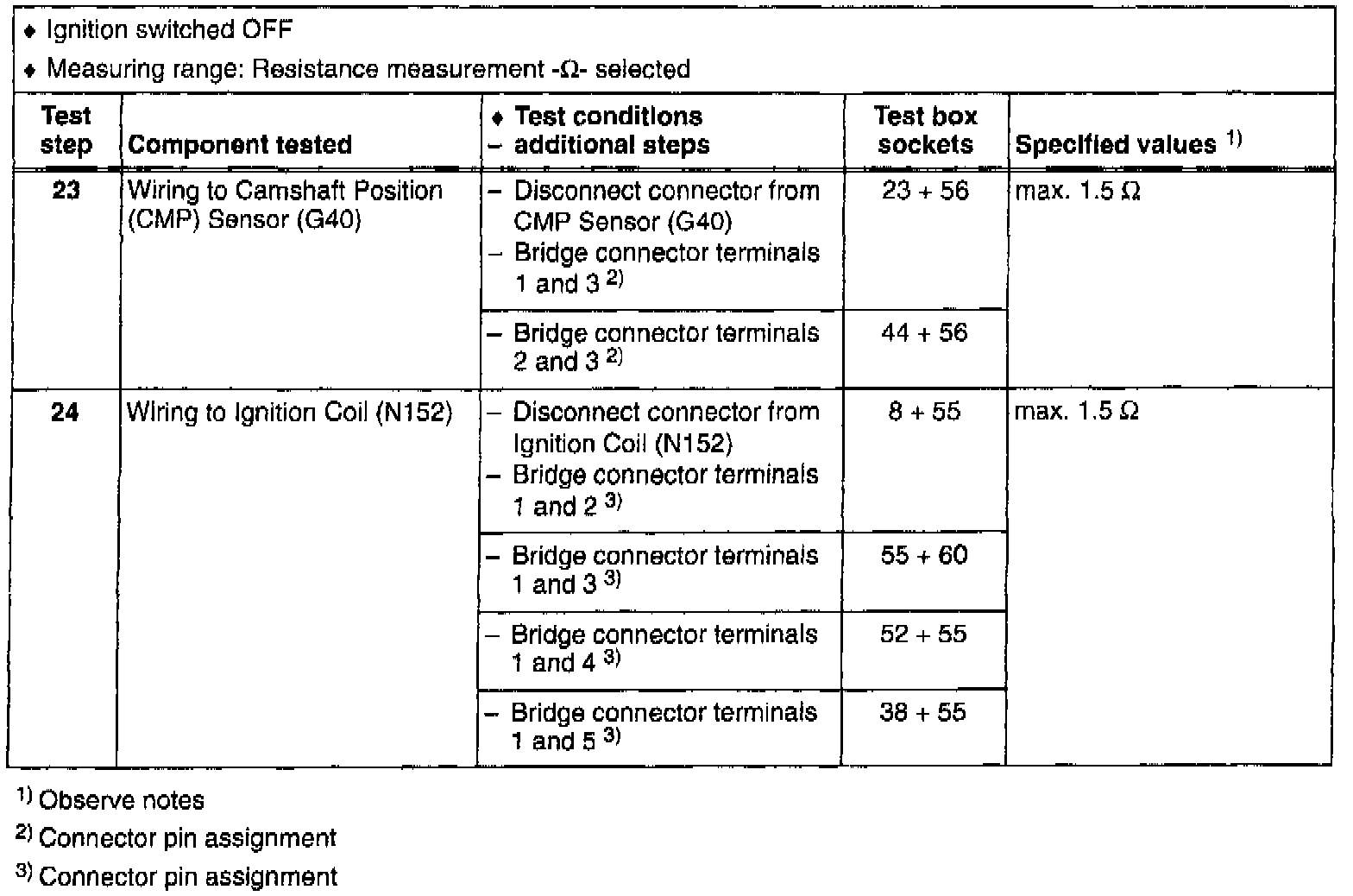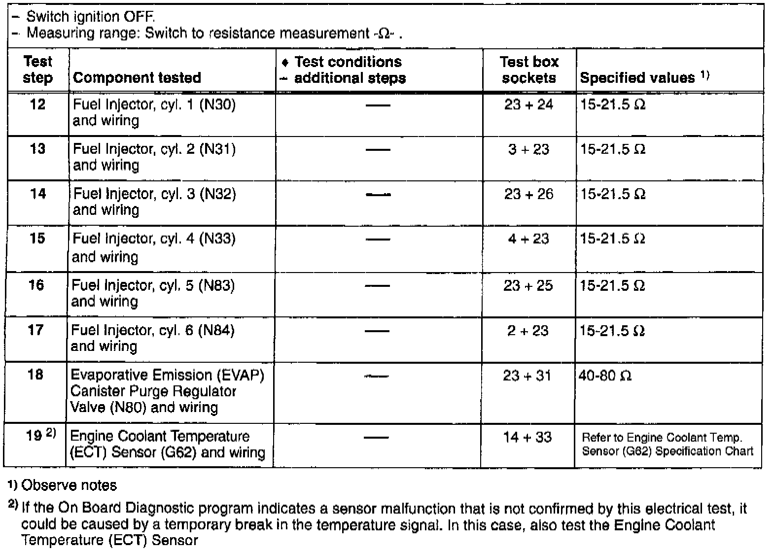- Perform the electrical checks using the VAG 1598 Test charts.