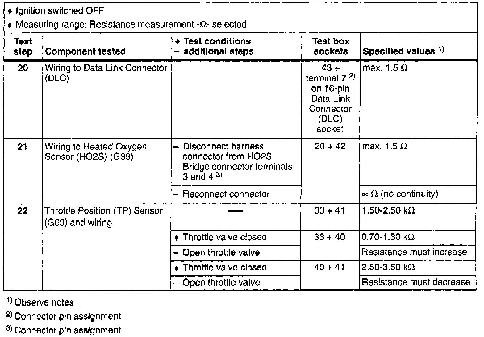 - Some test steps included in the following charts are for components that are not on all vehicles, i.e. EGR Sensor, Air Pump relay, etc.