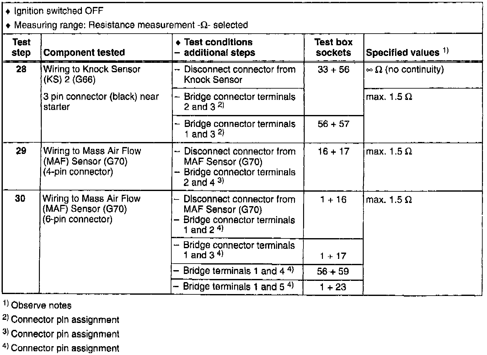 - Connect adaptor cable VAG 1598/18 between the Test Box and engine control module harness connector.