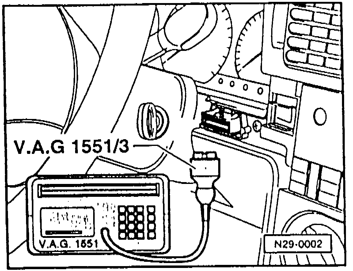 - connect Scan Tool VAG 1551 using adaptor cable VAG 1551/1 as follows: