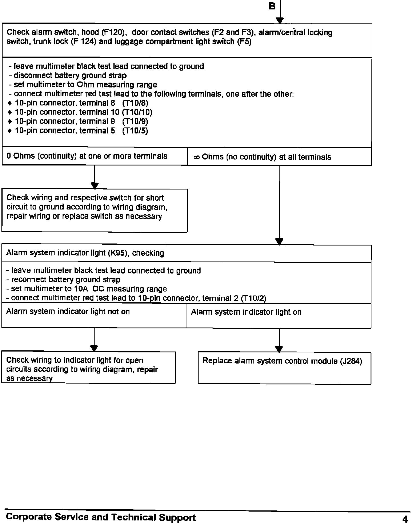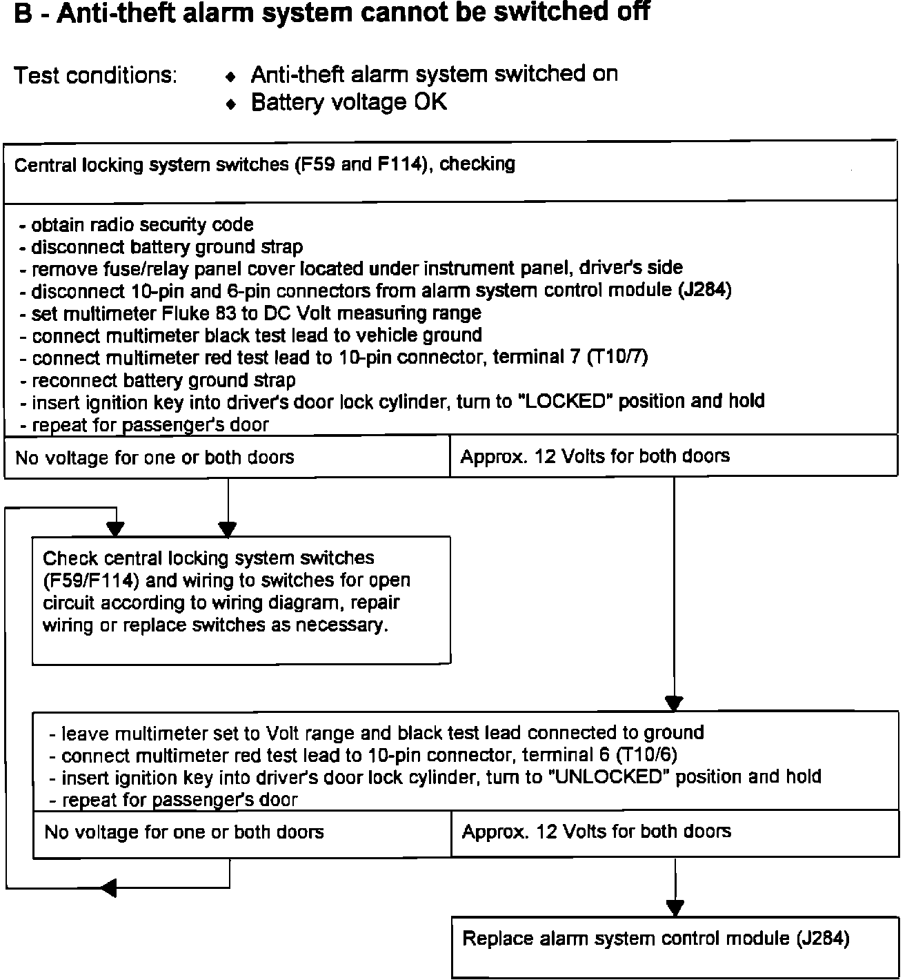 Anti-theft alarm system, troubleshooting