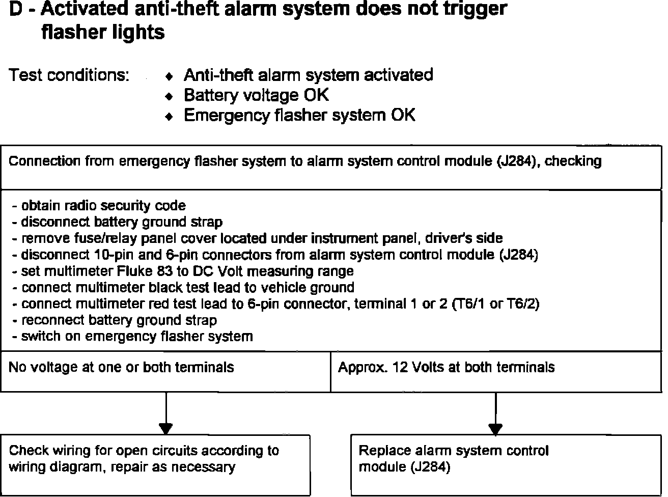 D - Activated anti-theft alarm system does not trigger flasher lights