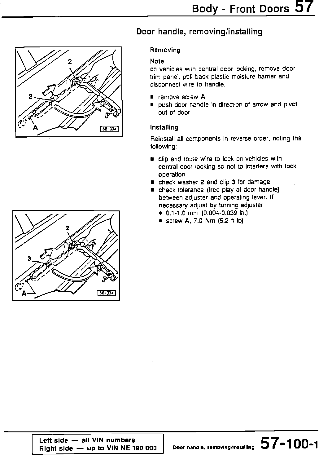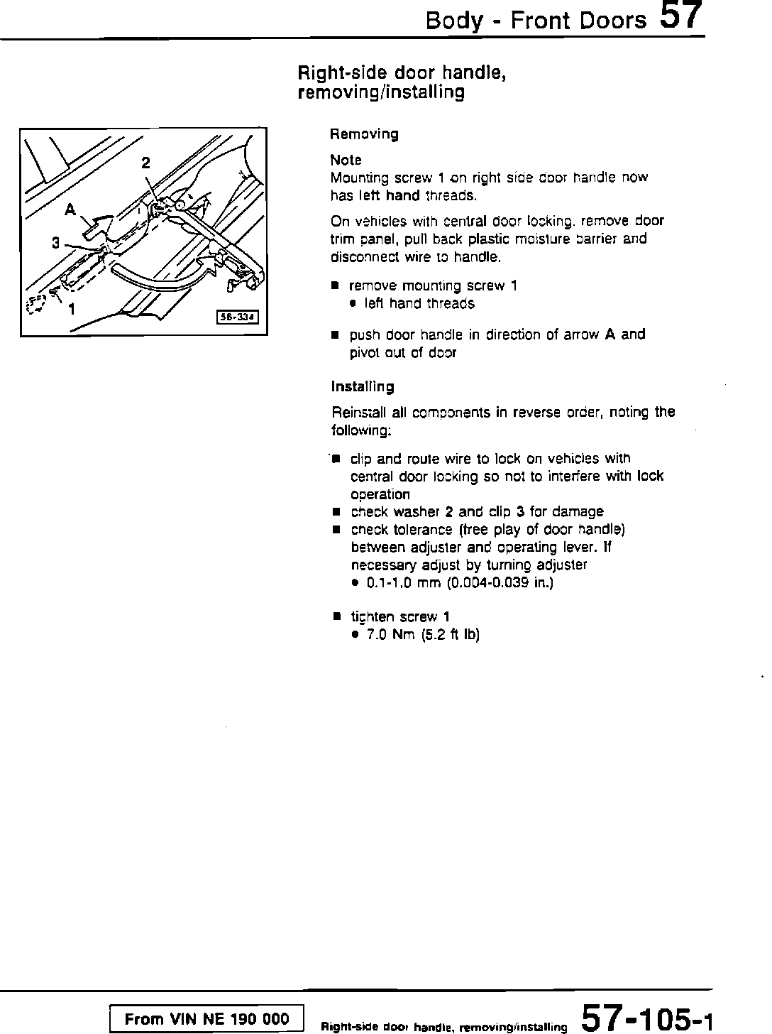 The repair information regarding modifications to the right side door handles for the Passat from VIN 190 000 will be integrated into the next update of Repair Manual Microfiche No. W42-O31-190-F9.