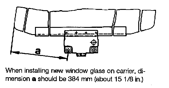 Figure shows the reference dimension for proper installation of new window glass onto the carrier.