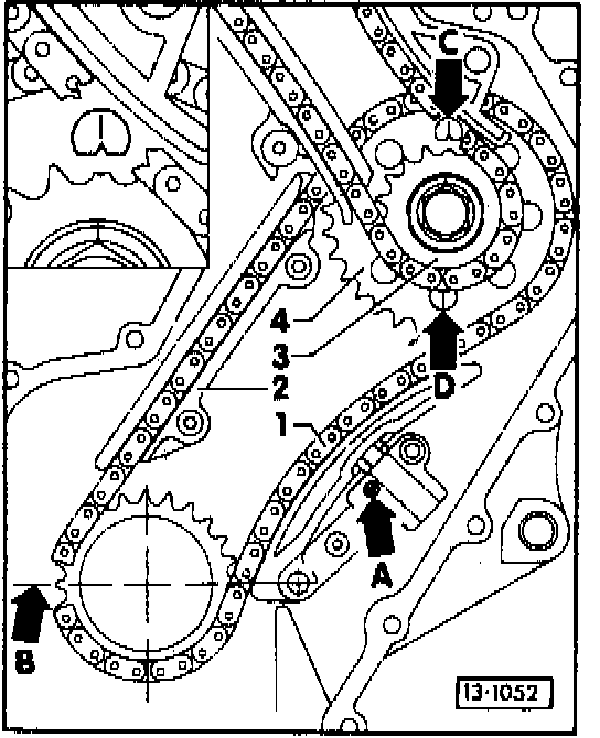 - attach camshaft chain gear and dual roller chain to the longer camshaft (cylinders 1, 3 and 5) and hand tighten