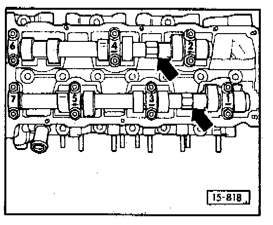 - position the camshafts in the cylinder head using the 3268 camshaft guide