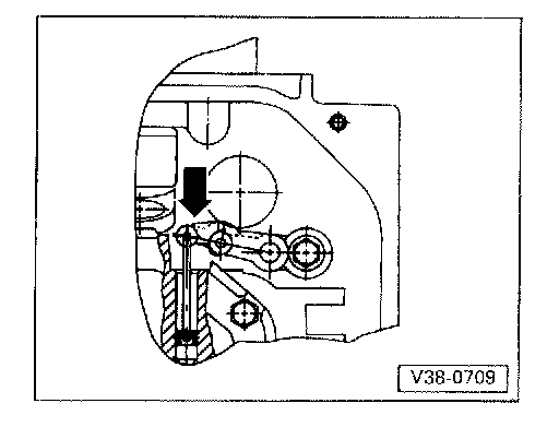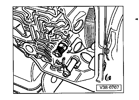 - Push operating rod with manual selector valve into valve body as far as stop (in direction of arrow) and tighten bolt.