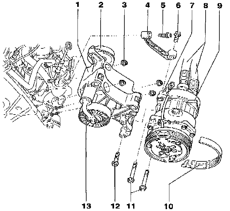 9 - A/C compressor Removing from bracket: