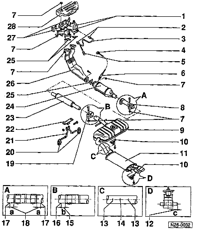 - After repairs be sure that the exhaust system is not under tension and that there is sufficient clearance between the exhaust system and the body.