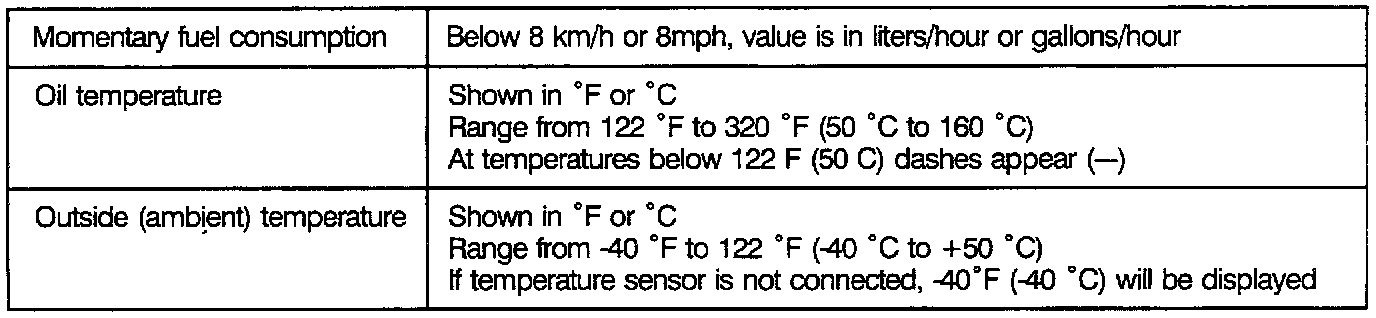 If the display values for the momentary fuel consumption, oil temperature or outside air (ambient) temperature are inaccurate, perform check mode test before attempting repairs: