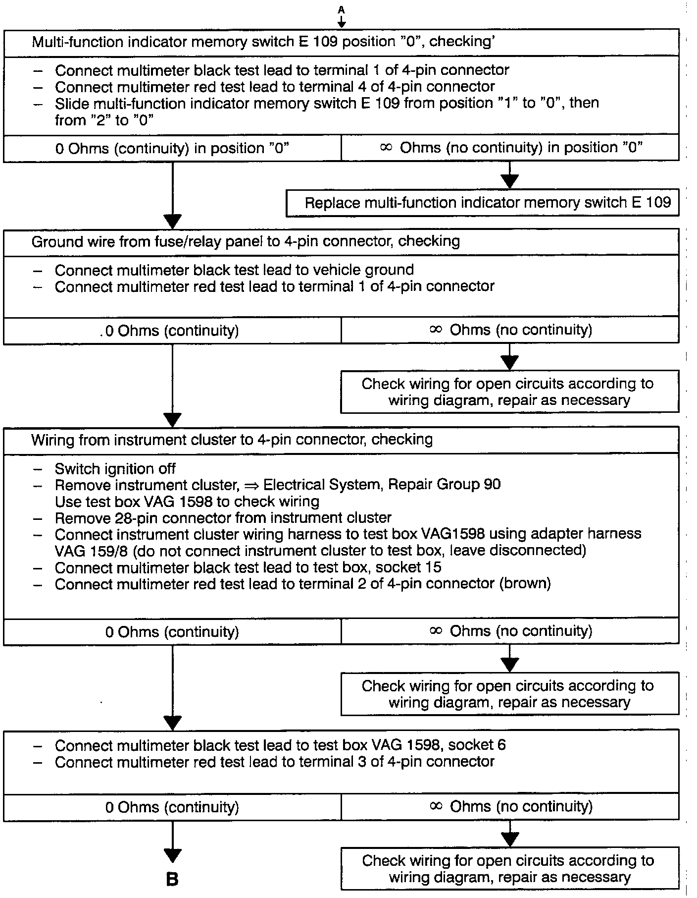 Troubleshooting - Checking Multi-Function Indicator Mode Select Switch E86, Multi-Function Indicator Memory Switch E109 (Part 2 Of 3):