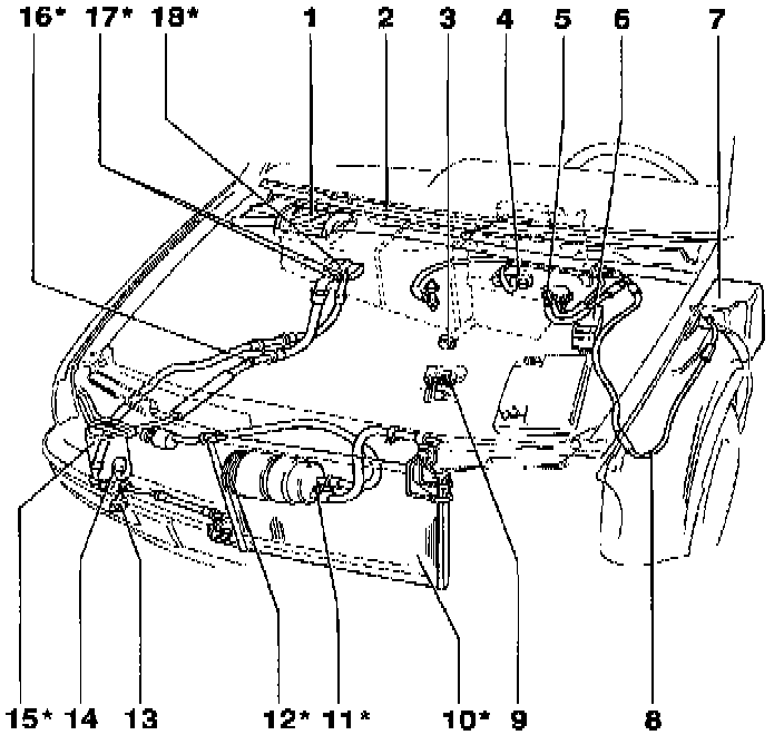 9. A/C thermal switch (F163 and third speed coolant Fan Control (FC) thermal switch (F165)