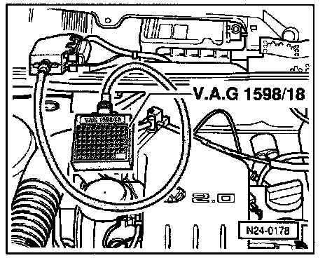 - Connect VAG 1551/1552 scan tool and select "Engine Electronics" address word 01. When doing this the ignition must be switched on. Refer to"On-Board Diagnostics II With VAG 1551". Testing and Inspection